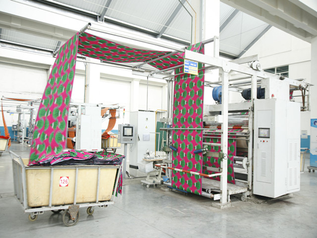 華紡股份有限公司花布公司是公司印染主導(dǎo)產(chǎn)業(yè)板塊的重要組成部分,集印花面料的設(shè)計(jì)、印制、后整及銷售于一體,擁有進(jìn)口齊瑪20套色圓網(wǎng)印花機(jī),由高效配套的水洗機(jī)、退漿機(jī)、雙面印花機(jī)、絲光機(jī)、蒸化機(jī)、拉幅機(jī)等裝備組成13條功能先進(jìn)的印花生產(chǎn)線,輔以2條先進(jìn)的自動(dòng)調(diào)漿系統(tǒng);采用CAD滑行設(shè)計(jì)處理系統(tǒng)和先進(jìn)的蘭光制網(wǎng)機(jī)、噴蠟制網(wǎng)機(jī)等,可根據(jù)客戶及市場需求設(shè)計(jì)花型,并自主研發(fā)引領(lǐng)時(shí)尚潮流的新花型。年產(chǎn)能力12000萬米,產(chǎn)品綜合出口率達(dá)80%以上,其中純棉真蠟印花布、純棉仿蠟印花布等100%外銷出口?;ú脊旧a(chǎn)工藝先進(jìn)、產(chǎn)品質(zhì)量穩(wěn)定,技術(shù)含量高、市場份額大,長期暢銷非洲等數(shù)十個(gè)國家和地區(qū),其產(chǎn)品在非洲市場占有重要位置。