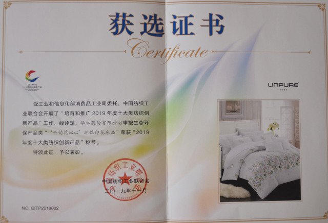 公司床品獲“2019年度十大類(lèi)紡織創(chuàng)新床品”稱(chēng)號(hào)