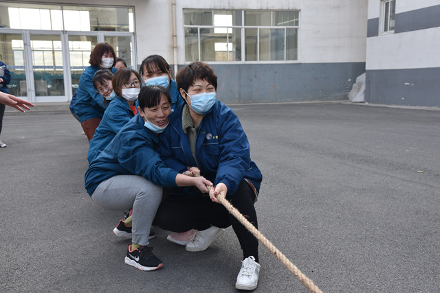 導(dǎo)讀:3月4日,在公司工業(yè)園區(qū)職工食堂廣場(chǎng)上,氣氛異常熱烈;隨著女工拔河比賽開(kāi)始的哨聲響起,比賽場(chǎng)上的隊(duì)員們鉚足了勁兒往后拉,場(chǎng)上助威加油的啦啦隊(duì)加油聲不停。