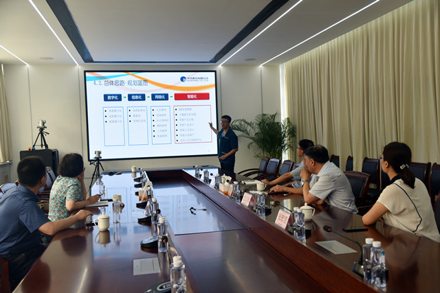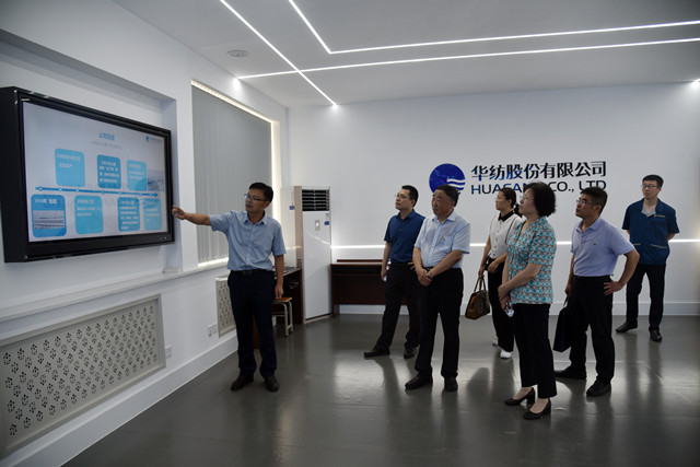曹學(xué)軍一行先后參觀了花布車間、綜合辦公區(qū)、家紡展廳、研發(fā)創(chuàng)意中心、工程技術(shù)研究院、智云中心等部門和區(qū)域,并聽取了公司推進(jìn)智能綠色工廠建設(shè)情況的匯報。