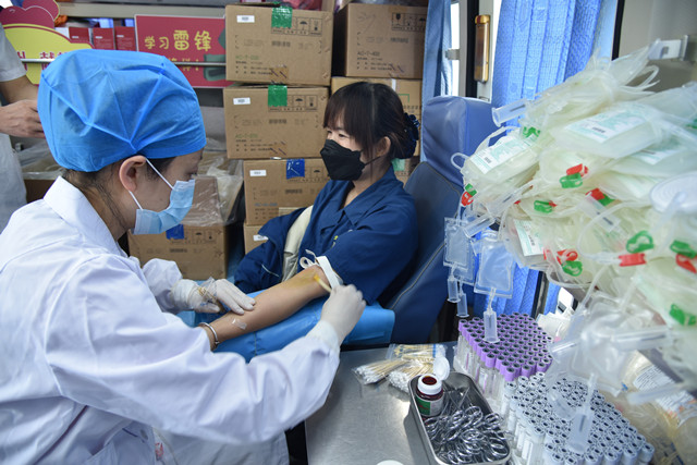 獻血隊伍中,既有工作多年的老同志,也有剛剛參加工作的新員工。獻血車就位后,員工在濱州市中心血站工作人員的指導下,認真填寫獻血登記表、測量血壓、抽血化驗,經(jīng)血液檢驗合格后開始獻血。“我參加無償獻血的初衷,就是想盡自己的一點力量。”在場參與獻血的一名員工說到。簡單的一句話,展現(xiàn)的卻是充滿溫暖情感的無私之愛。