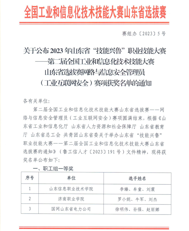 導(dǎo)讀:近日,2023年山東省“技能興魯”職業(yè)技能大賽——第二屆全國工業(yè)和信息化技術(shù)技能大賽山東省選拔賽網(wǎng)絡(luò)與信息安全管理員(工業(yè)互聯(lián)網(wǎng)安全)賽項(xiàng)圓滿結(jié)束,