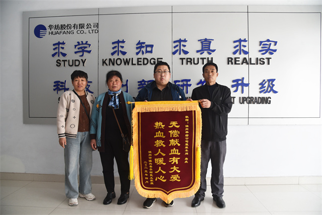 4月8日,服裝車間員工房虎收到了一面飽含深情的錦旗,上面寫著“無償獻(xiàn)血有大愛,熱血救人暖人心”。這面錦旗不僅是對房虎長期堅持無償獻(xiàn)血善舉的高度認(rèn)可,更彰顯了華紡人熱心公益、奉獻(xiàn)社會的精神風(fēng)貌。