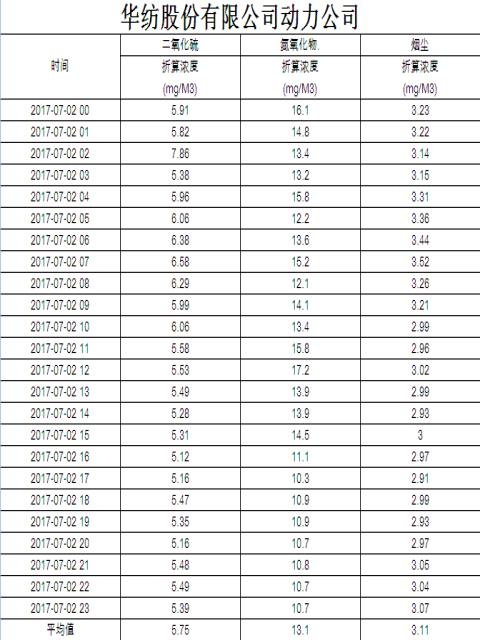 煙氣排放數(shù)據(jù)信息公開2017.7.2數(shù)據(jù)