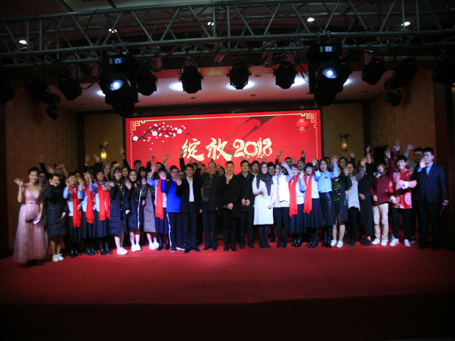 晚會結(jié)束后,公司總經(jīng)理閆英山等公司領導與參加演出的員工合影;來自突尼斯的天津工業(yè)大學見習生琺嘟娜受邀登臺,參加了合影。
